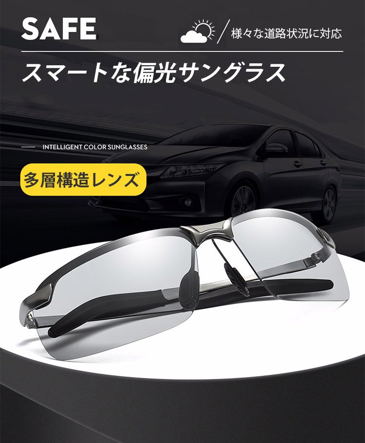 【日夜兼用偏光サングラス】クリアな視野、日夜兼用、サイクリングや安全運転をサポート